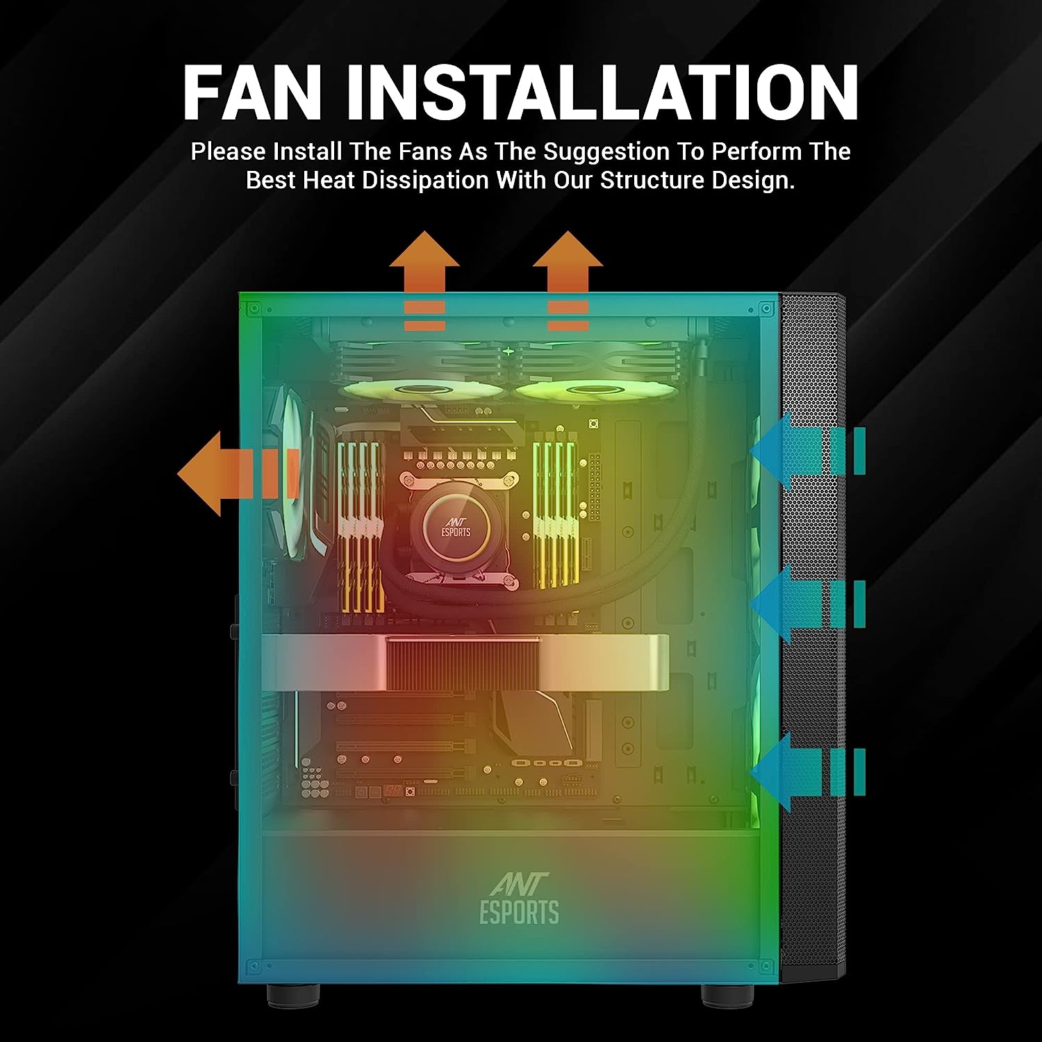 Cooling Support: Front – up to 120 mm x3/140 mm x3/200 mm x2; Top – up to 120/140 mm x2; Rear – 1 × 120 mm