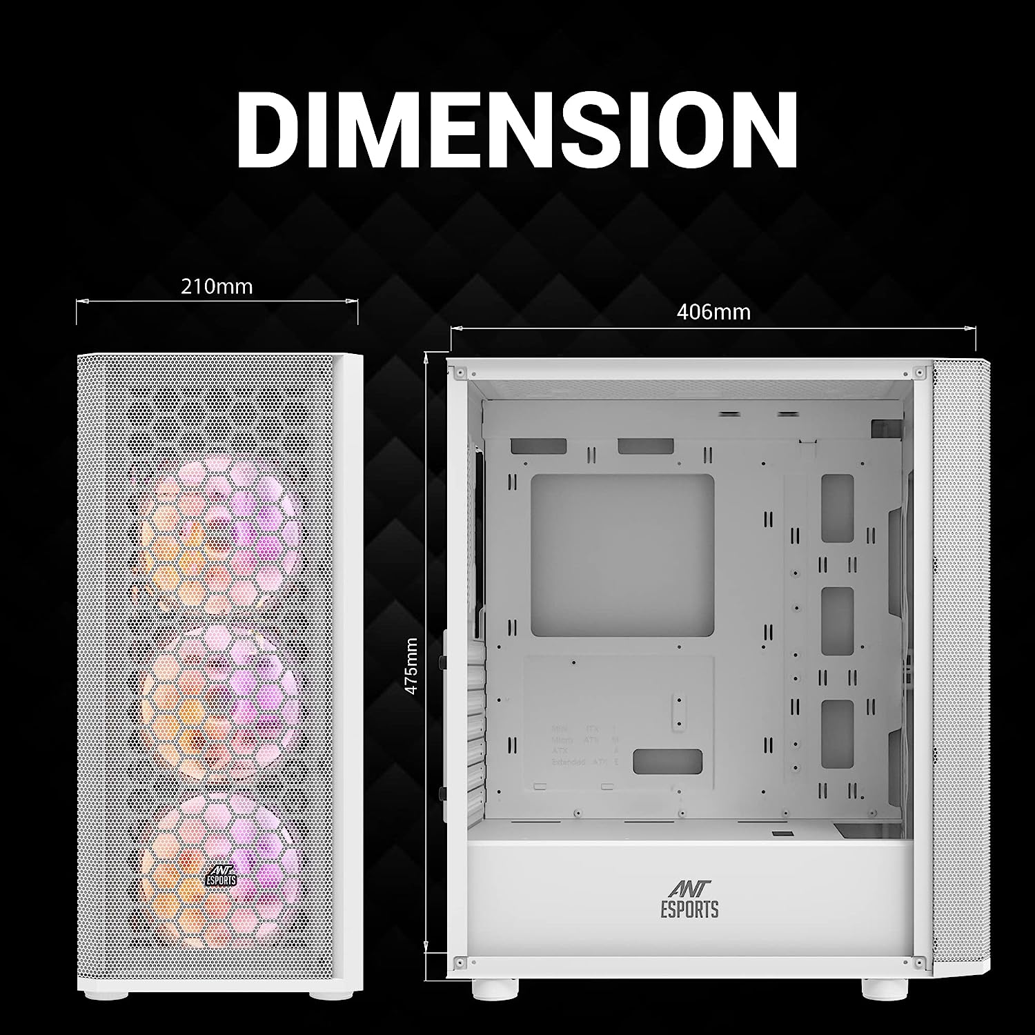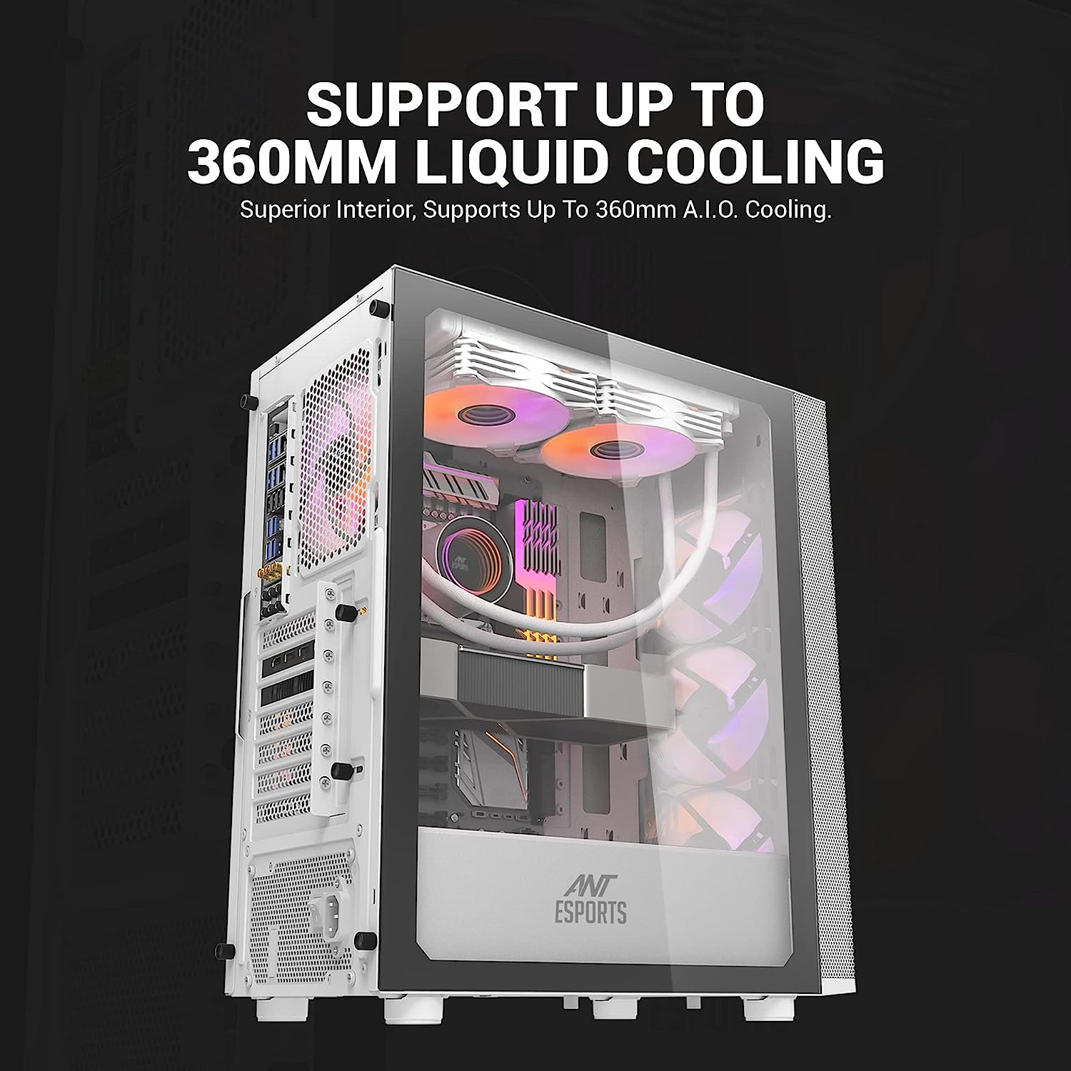 Supports ATX, micro-ATX and mini-ITX motherboards. Pre-installed with multiple 120 mm front fans and high-airflow front panel design. Supports up to ~360 mm front radiator, up to ~280 mm top radiator, GPU clearance ~350 mm and CPU cooler height ~160 mm. Available in Black or White finishes.