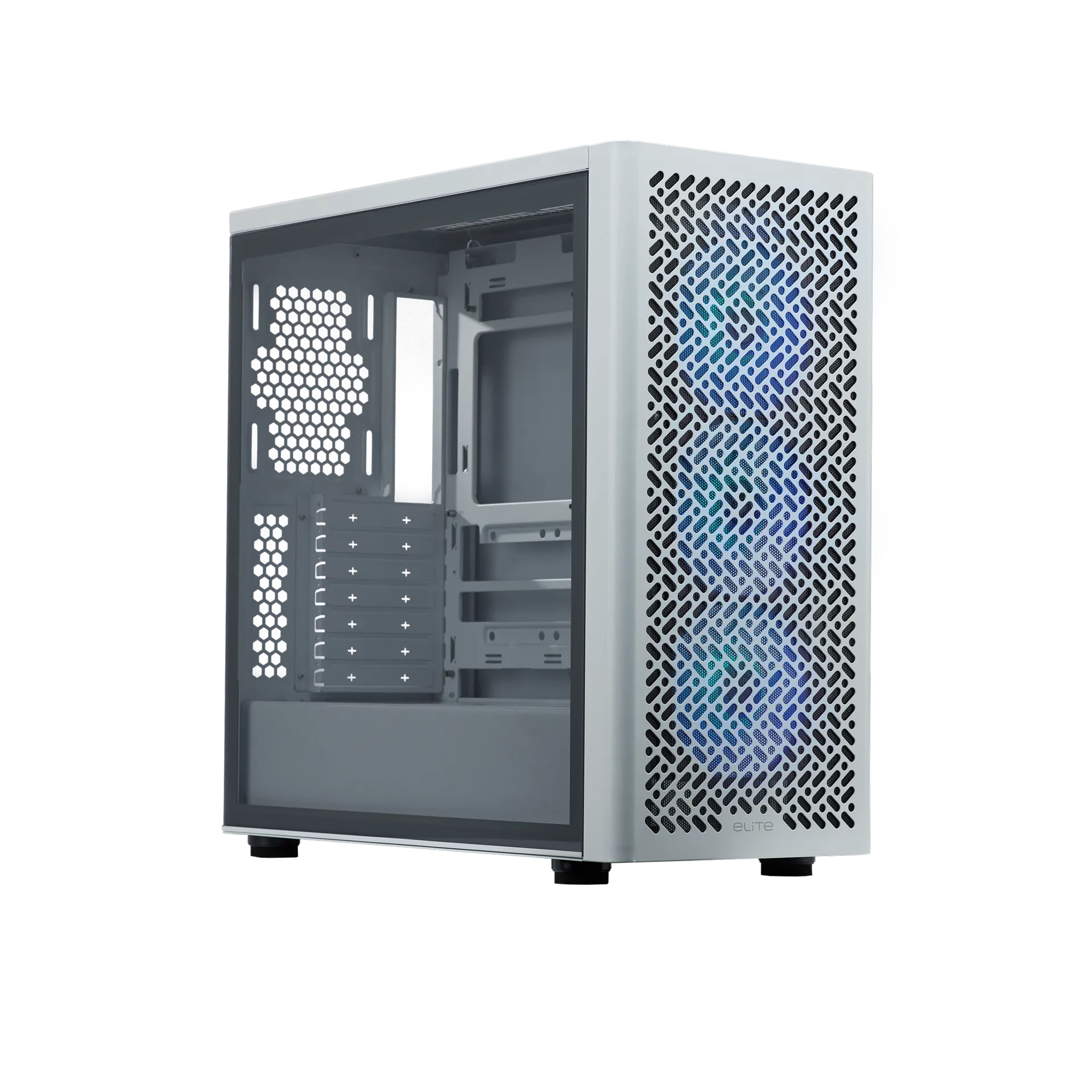 The Elite 502 features a dual-chamber design separating PSU and storage from the motherboard area for cleaner airflow and simplified assembly. Its FineMesh front panel maximizes air intake while filtering dust, and the case supports full-length GPUs up to 410 mm and radiators up to 360 mm. Available in both Matte Black and Matte White finishes, it offers a minimalist look suited for both gaming and professional spaces.