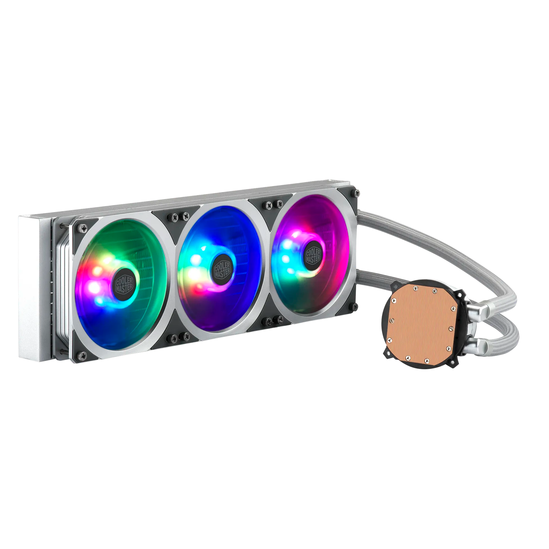 This edition features a full aluminium top cover and integrated design where the pump and radiator fans merge into one cohesive unit. It includes three 120 mm MasterFan ARGB fans pre-installed in a push-pull configuration for enhanced cooling and reduced vibration. The dual-chamber pump design ensures optimal coolant flow, while Gen 2 ARGB lighting provides vivid, uniform illumination compatible with major motherboard lighting ecosystems.