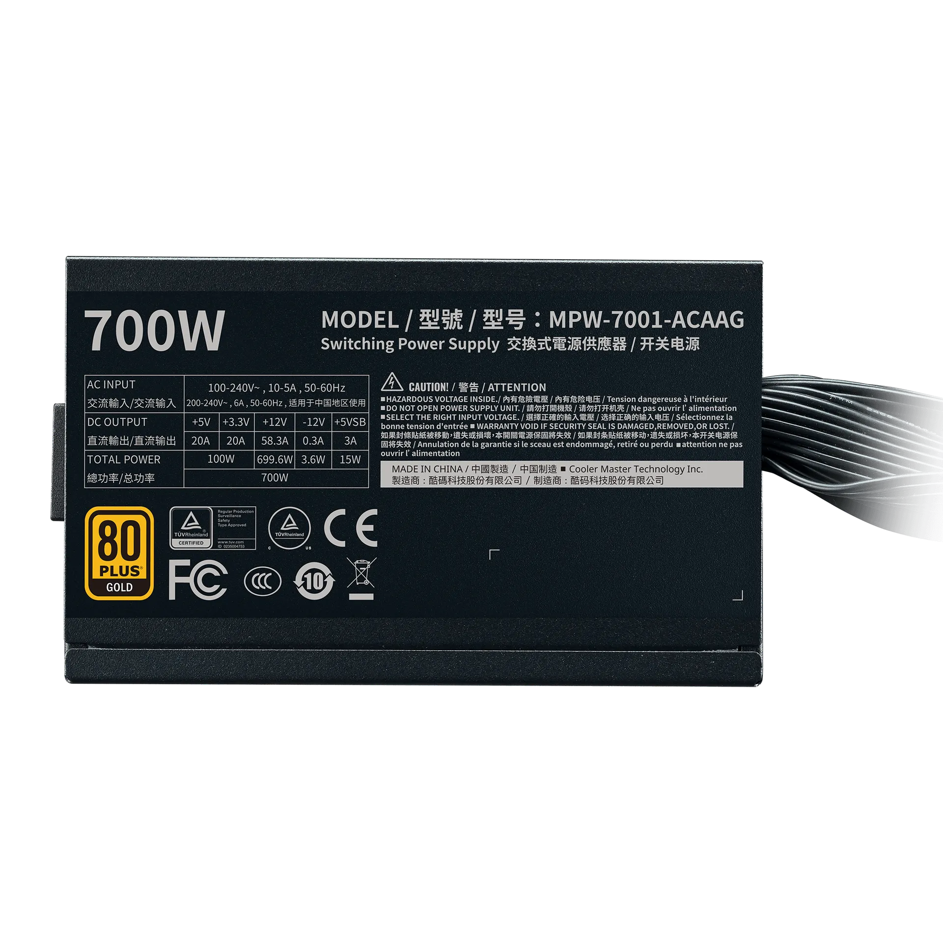 The Cooler Master G700 Gold is a 700 W 80 Plus Gold certified power supply designed for gaming, professional, and high-performance desktop builds. Combining efficiency, reliability, and quiet operation, it delivers consistent power for modern GPUs and CPUs while maintaining compact dimensions and clean aesthetics.