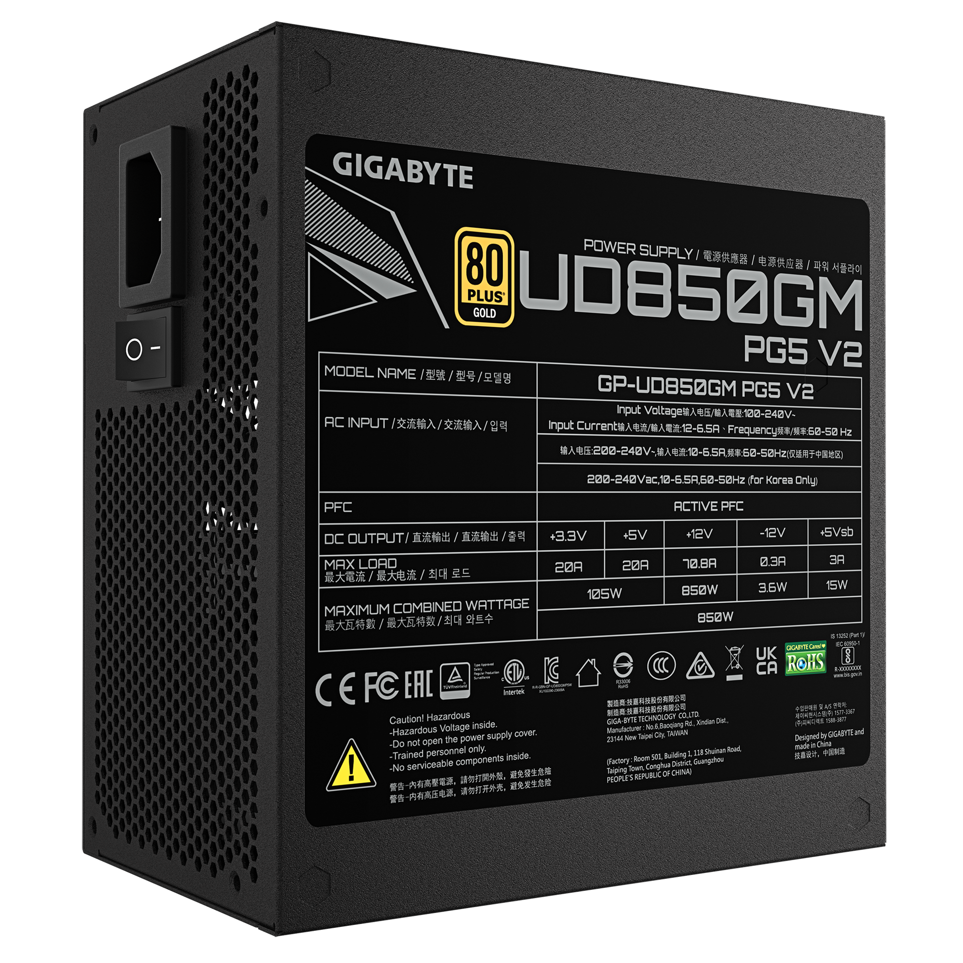 The Gigabyte UD850GM PG5 V2 is an 850 W high-efficiency power supply engineered for next-generation gaming and professional workstations. Built with PCIe 5.0 and ATX 3.0 standards, it provides stable, future-ready power delivery for the latest GPUs and high-core-count processors, ensuring maximum reliability and performance under demanding workloads.